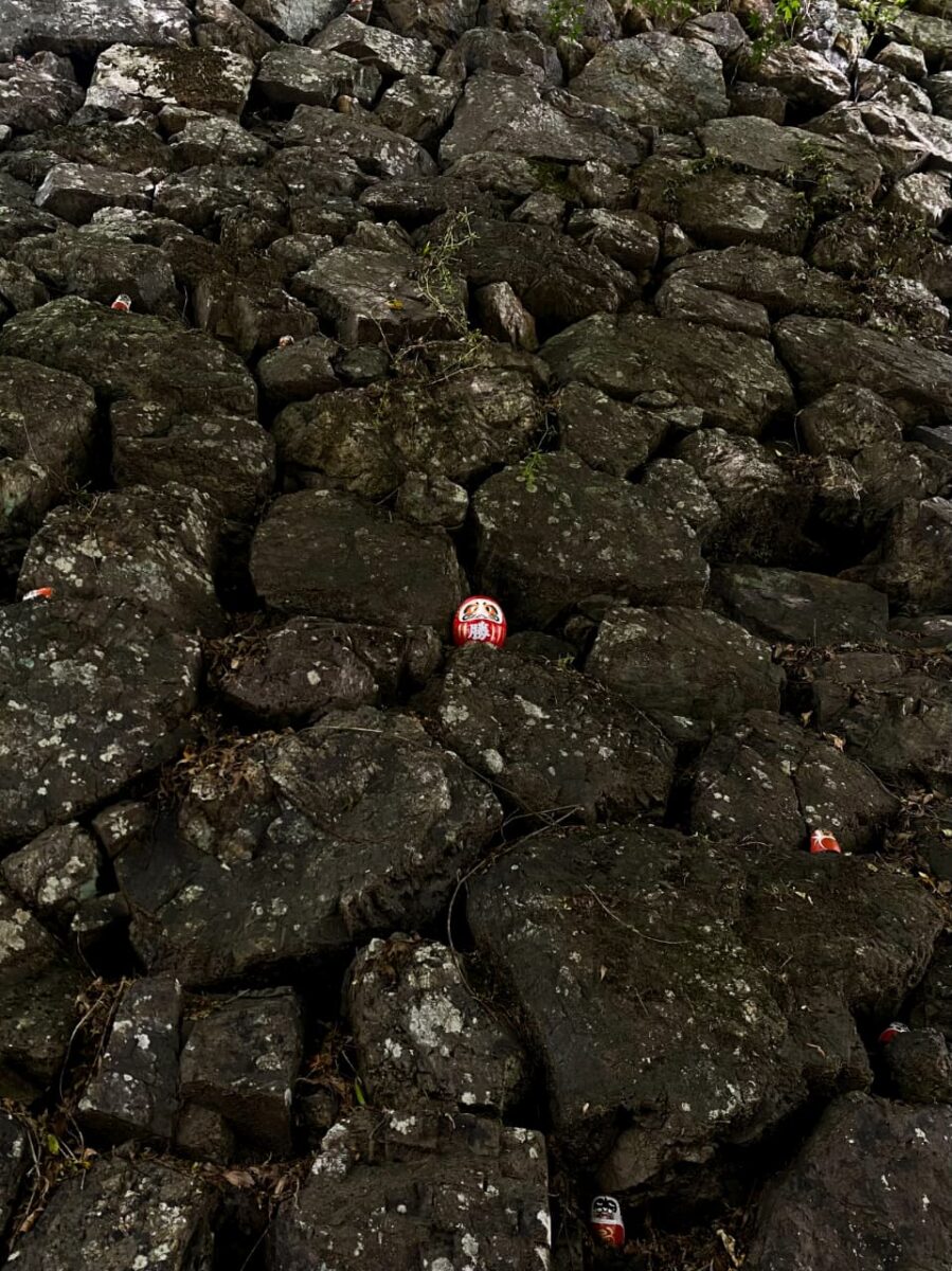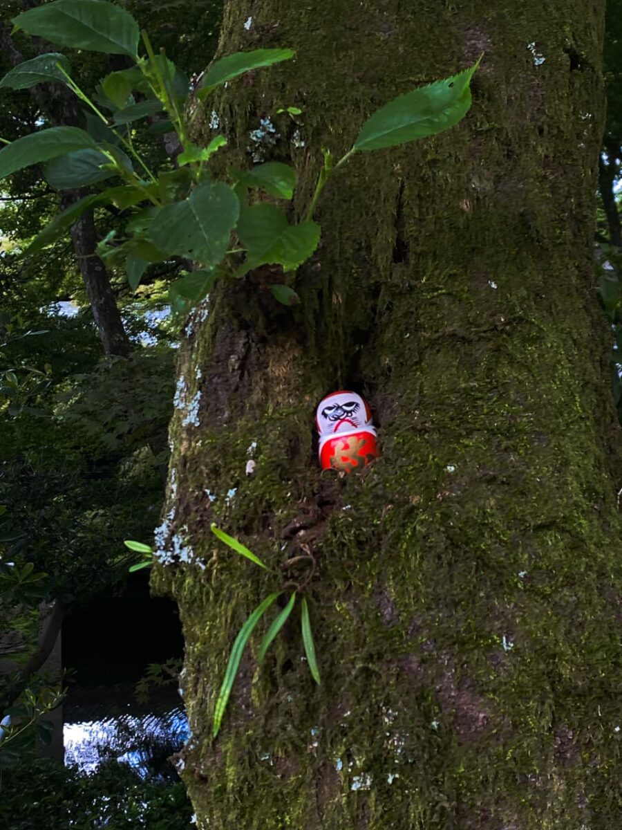 Entre musgos, árvores e pedras, os Darumas surgem como se sempre tivessem pertencido àquele lugar. Entrelaçados à natureza e espalhados por todos os cantos imagináveis, desde o portão de entrada à saída, as bolinhas vermelhas estão presentes do começo ao fim.