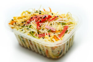 Tradicional: macarrão, legumes, carne bovina, frango e molho.
