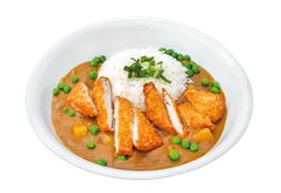 Molho de curry- suave ou apimentado- à moda japonesa, frango empanado, legumes e arroz.